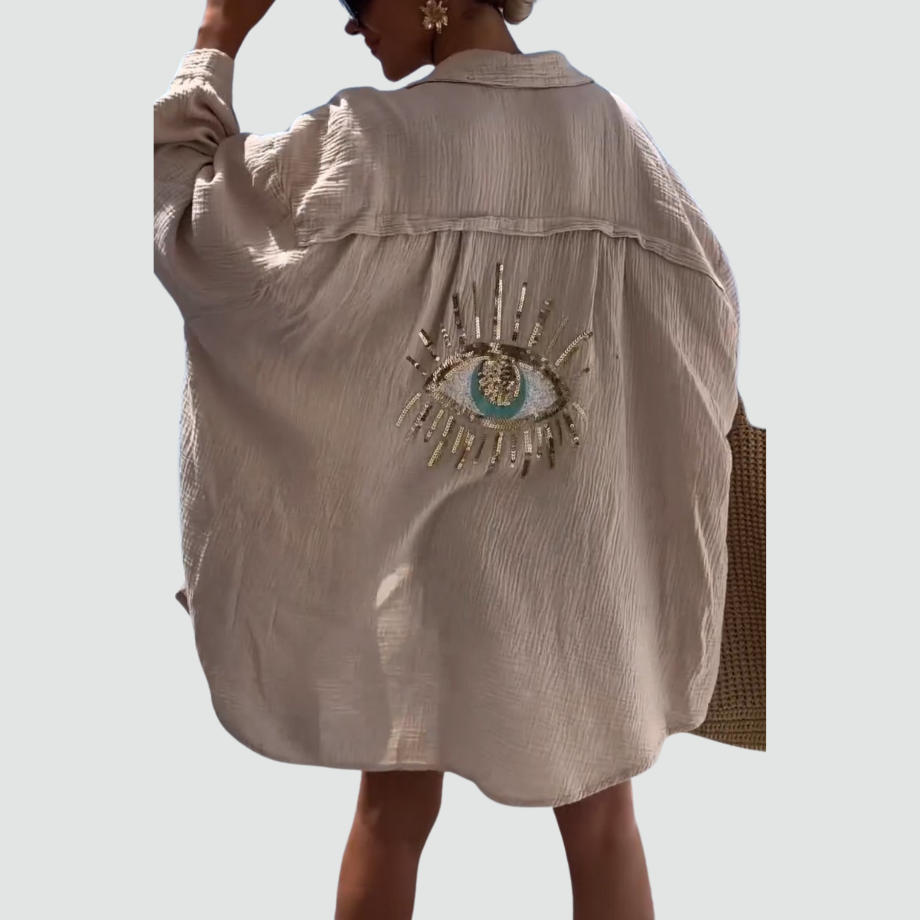 Waarom kiezen voor onze Chique Oversized Blouse met Oogaccent?